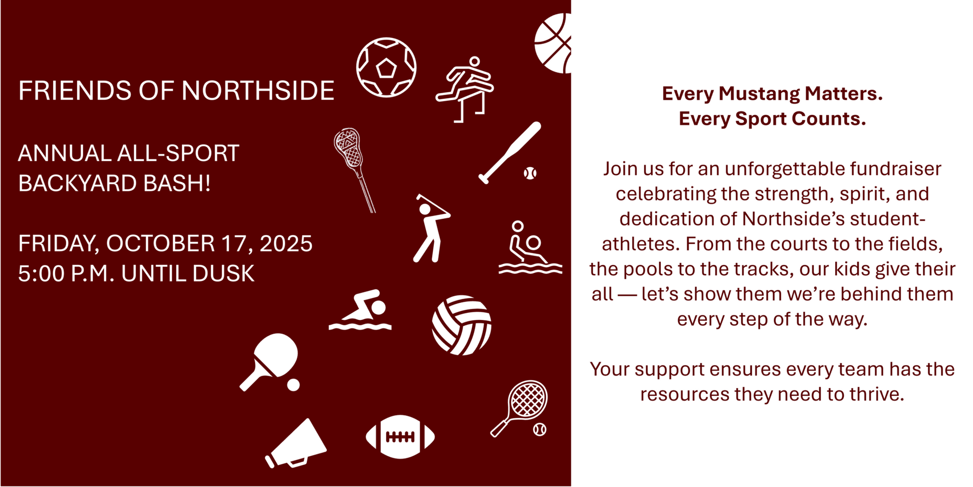 Join us for an evening of Mustang spirit as we celebrate Northside athletes and kick off the fall season. The Bash is held in the NCP backyard — and prospective families are welcome!
